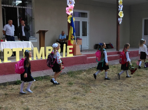Este prima zi de şcoală, o zi a unui nou început. Cu zâmbete, emoţii pozitive şi buchete de floriau păşit pragul şcolii elevii Gimnaziului „Dumitru Roman” din satul Drochia.
