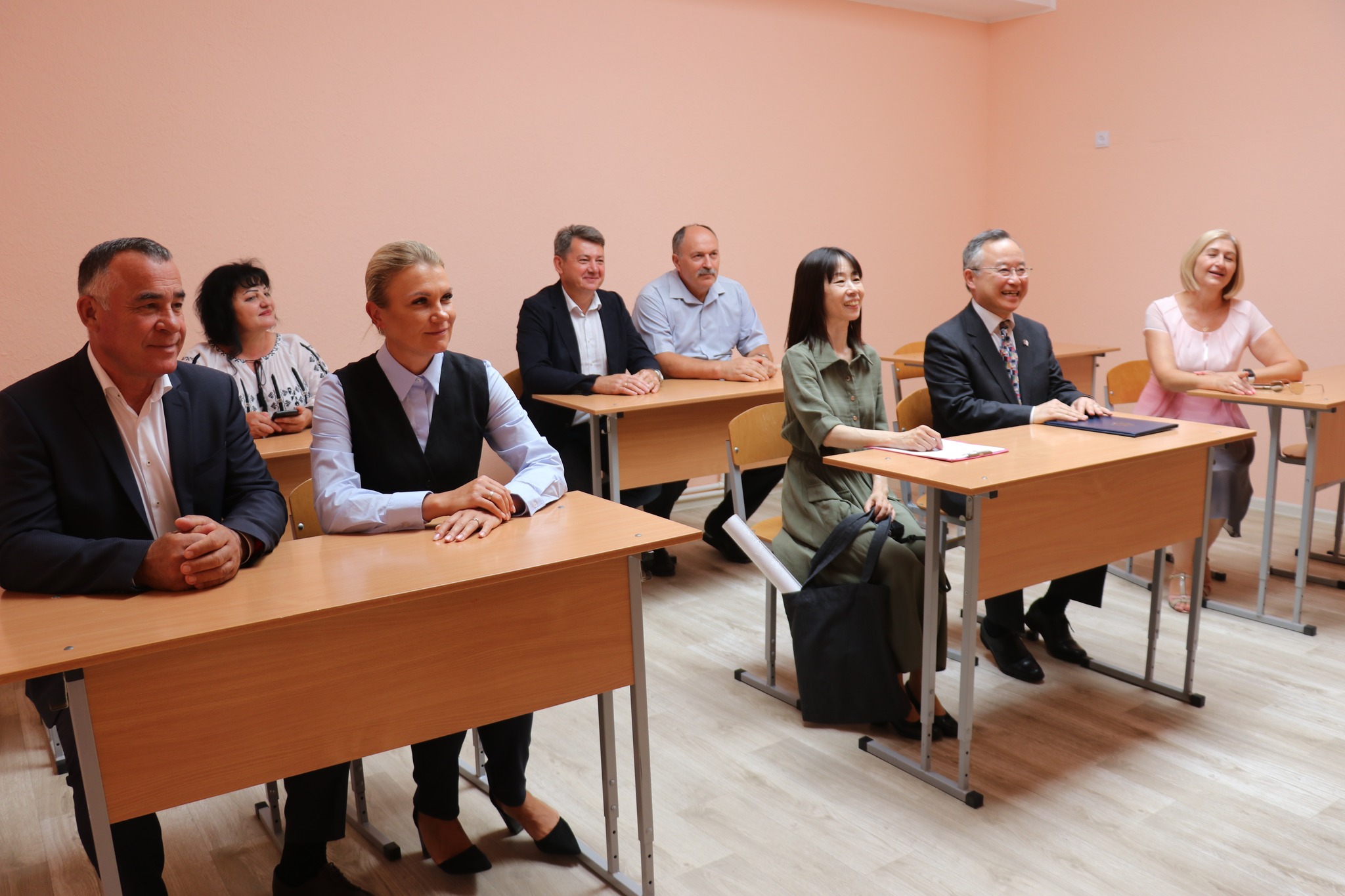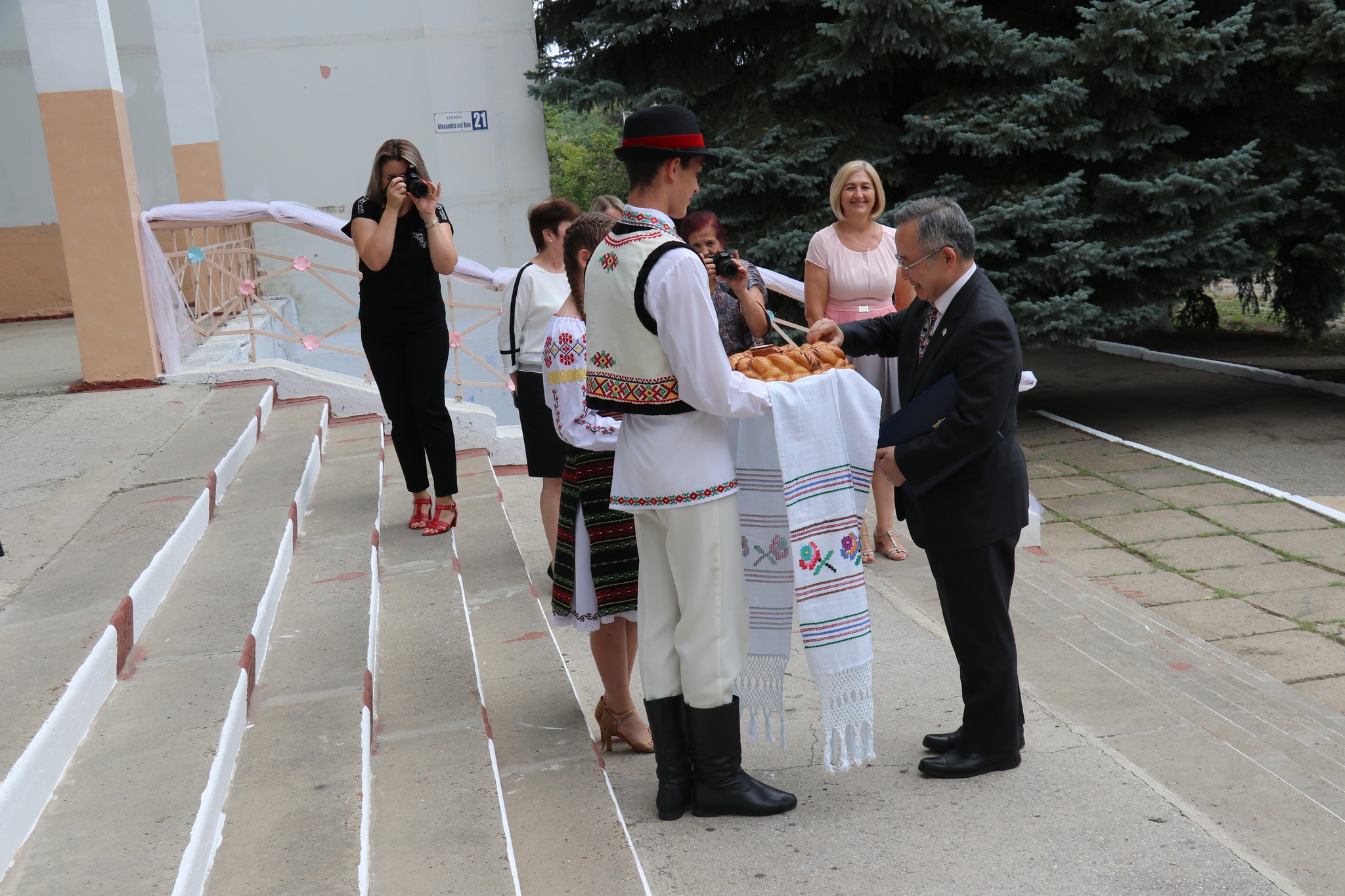 La recepție au participat Excelența Sa, Ambasadorul Extraordinar și Plenipotențiar al Japoniei în Republica Moldova, Dl. YAMADA Yoichiro; șeful-adjunct al Oficiului Teritorial Soroca al Cancelariei de Stat (raionul Drochia), Vitalie Josanu; primarul orașului Drochia, Nina Cereteu, șeful-interimar al Direcției educație a Consiliului raional, Ion Recean.