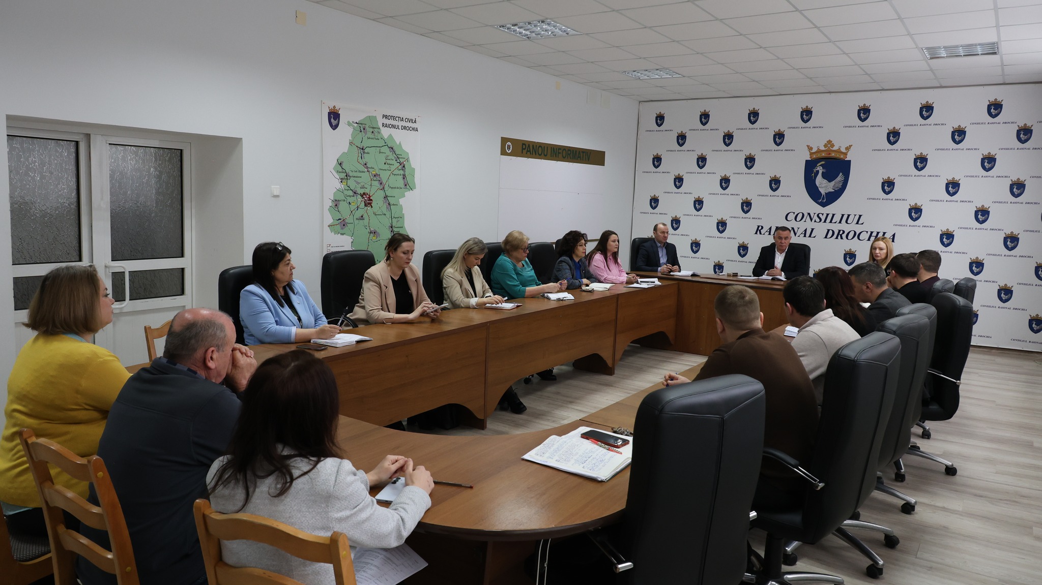 La lucrările ședinței au participat vicepreședinții raionului, Tatiana Botnar și Igor Jidraș, precum și conducătorii direcțiilor, secțiilor și serviciilor din cadrul Consiliului raional Drochia, în vederea asigurării unei abordări integrate a subiectelor aflate pe agenda administrativă.