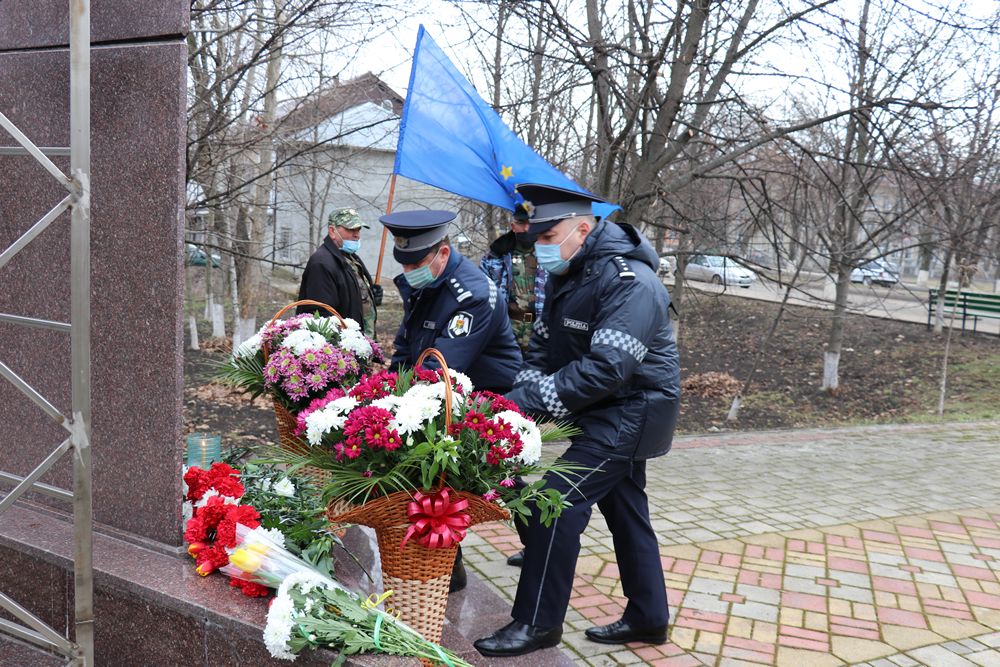 Sub egida președintelui raionului, participanții la comemorare au depus flori și au păstrat un minut de reculegere în memoria celor care nu s-au întors de pe câmpul de luptă la monumentul edificat în memoria poliţiştilor căzuţi la datorie, la bustul lui Ștefan cel Mare și Sfânt și la monumentul „Pentru Țară pentru Neam”.